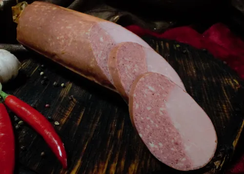 Сервела́т — сорт колбасы с характерным пёстрым рисунком на срезе. Рисунок получается за счёт сочетания кусочков мышечной ткани разных оттенков и измельчённого шпика (и/или свиной грудинки). Мы готовим свои колбасы используя только самые лучшие ингредиенты и специи!