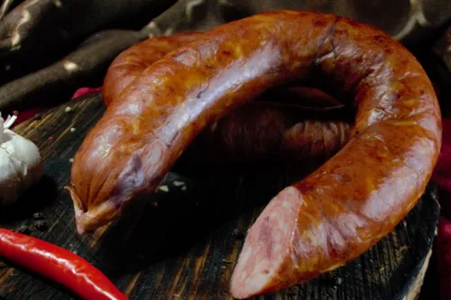 Этот вид колбас коптится без предварительной термообработки, в сыром виде. Это ферментированная колбаса, ее приготовление может занимать больше месяца: от осадки сформированных батонов до копчения и последующей сушки. Такая колбаса, как и другие копченые, содержит много специй и пряностей и кусочки шпика разного размера.