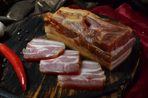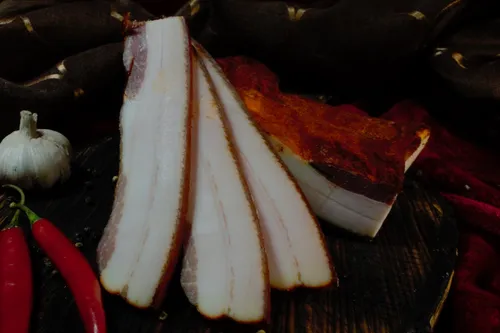 В эту подгруппу относятся соленое сало и грудинка в различных обсыпках, таких как классический чеснок, а так же множество экзотических вариантов с использованием различных трав и специй. Наши деликатесы солятся в пряных рассолах и достаются непосредственно перед упаковкой.