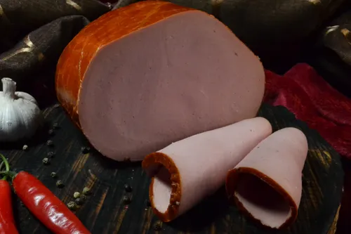 Ветчины — варёные колбасы с крупными вкраплениями рубленного фарша.